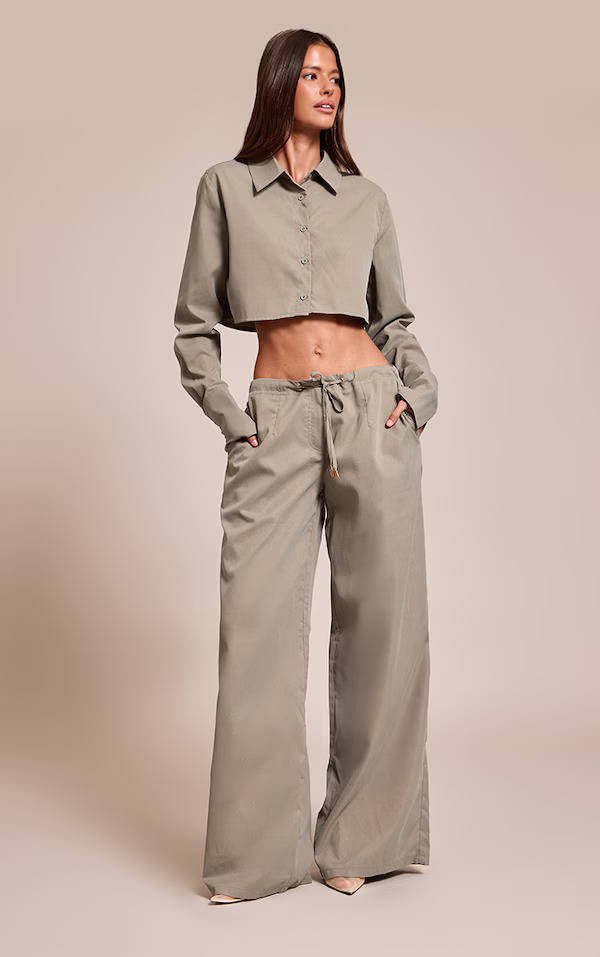 Dark Khaki Oversized Drawstring Straight Leg Trouser