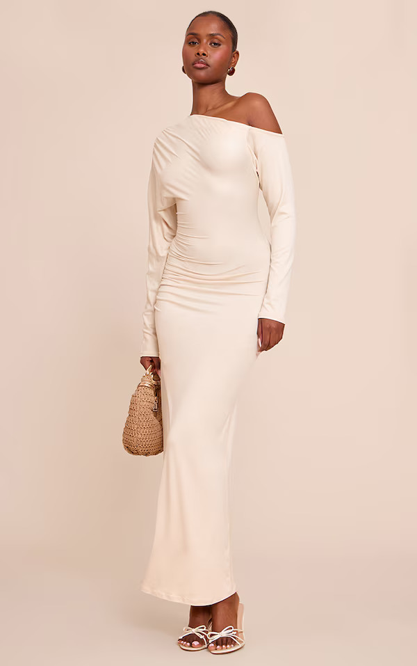 Almond Soft Touch One Shoulder Long Sleeve Maxi Dress